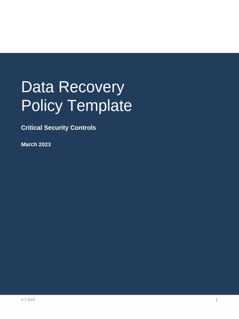 Data Recovery Policy Template For CIS Control 11 3 7 2023 PDF