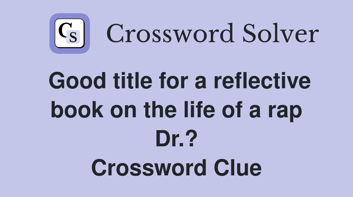 Good title for a reflective book on the life of a rap Dr ? Crossword