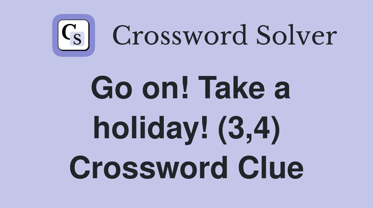 Go on Take a holiday (3 4) Crossword Clue Answers Crossword Solver
