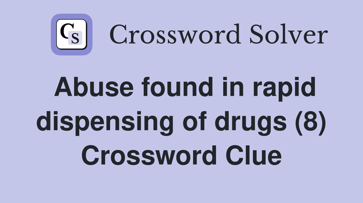 Abuse found in rapid dispensing of drugs (8) Crossword Clue Answers