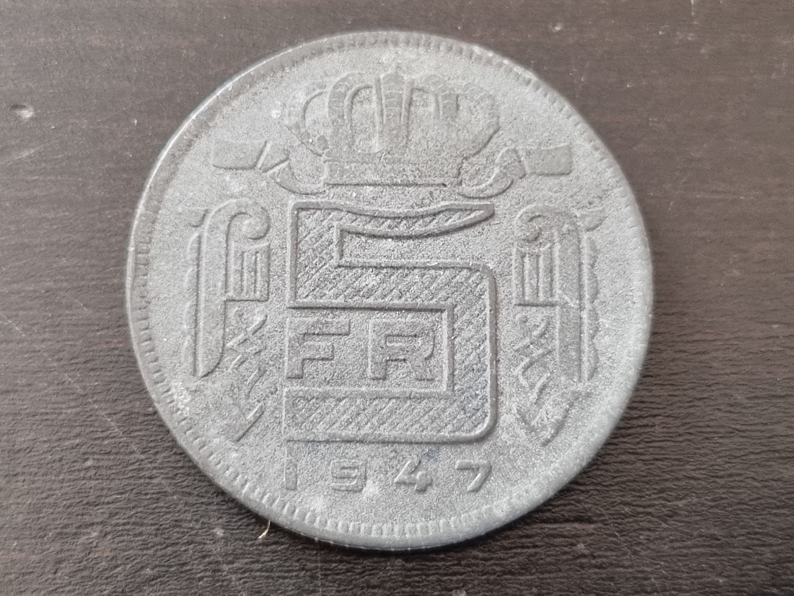 Pièce de 5 Francs Belges 1947 Léopold III RARE (D #39 occasion) à