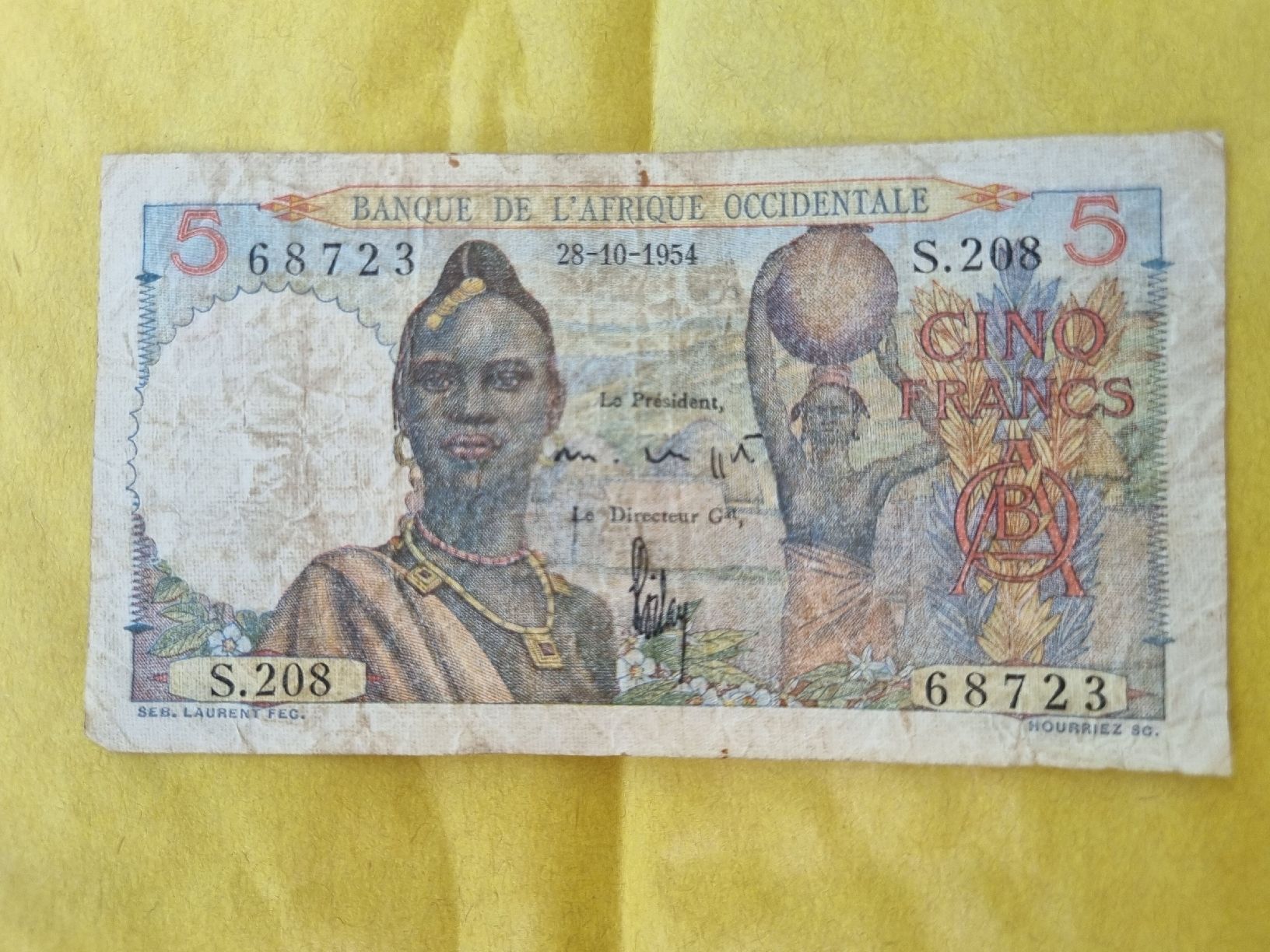 Billets Afrique Occidentale 5 Francs année 1954 RARE (D #39 occasion) à