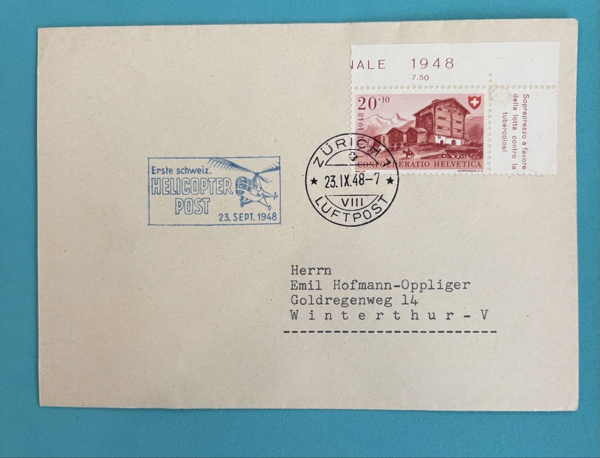 Rare: Enveloppe premier vol HELICOPTER POST 1948 (D #39 occasion) à