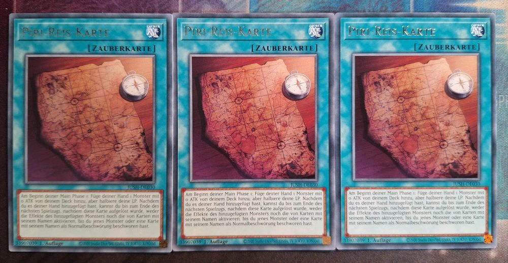 Yugioh Playset 3x Piri Reis Karte JUSH DE030 RARE (Neu und