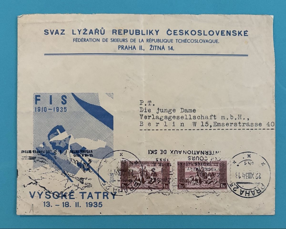Enveloppe philatélique Tchécoslovaquie Ski 1935 rare (D #39 occasion) à