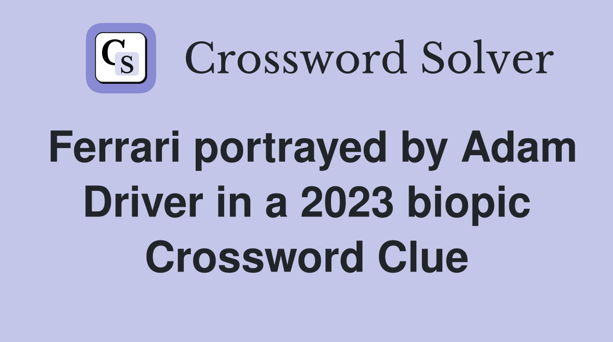 Ferrari portrayed by Adam Driver in a 2023 biopic Crossword Clue
