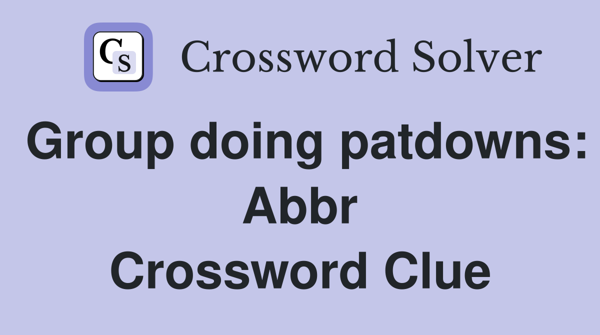 Group doing patdowns: Abbr Crossword Clue Answers Crossword Solver