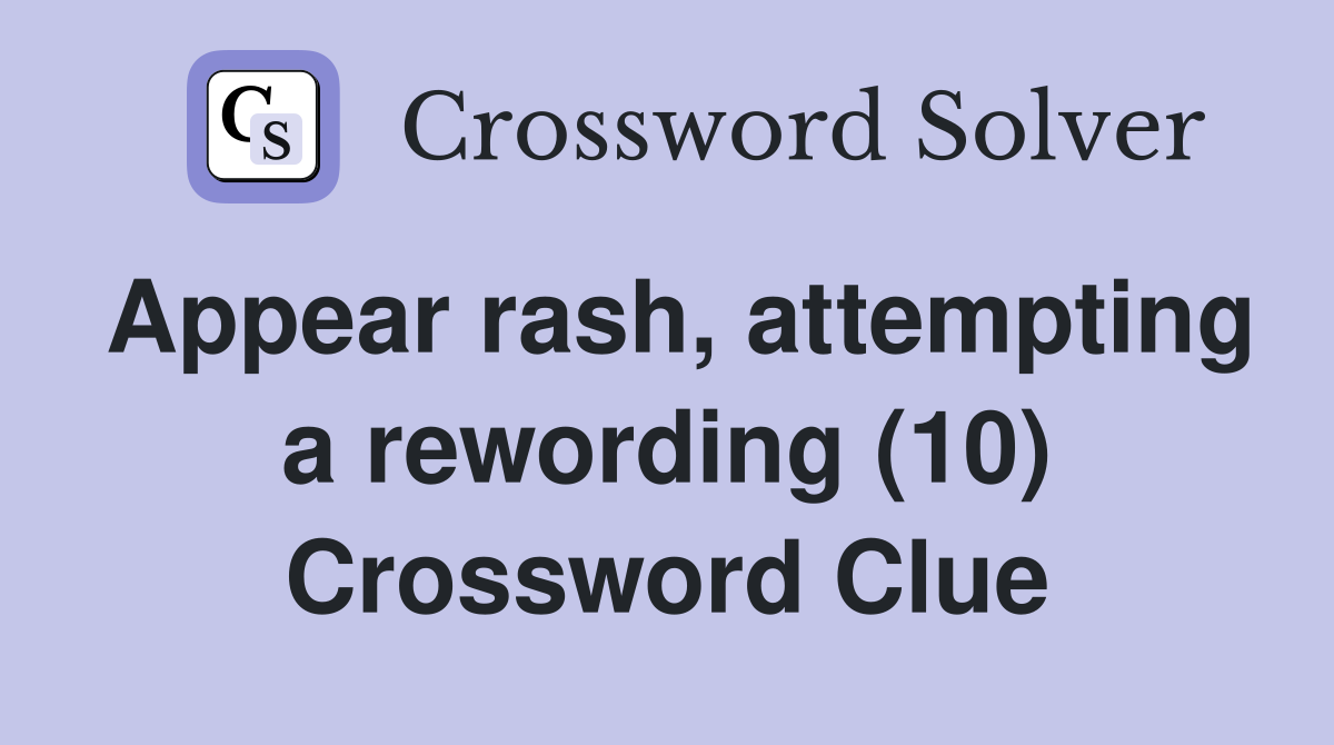 Appear rash attempting a rewording (10) Crossword Clue Answers