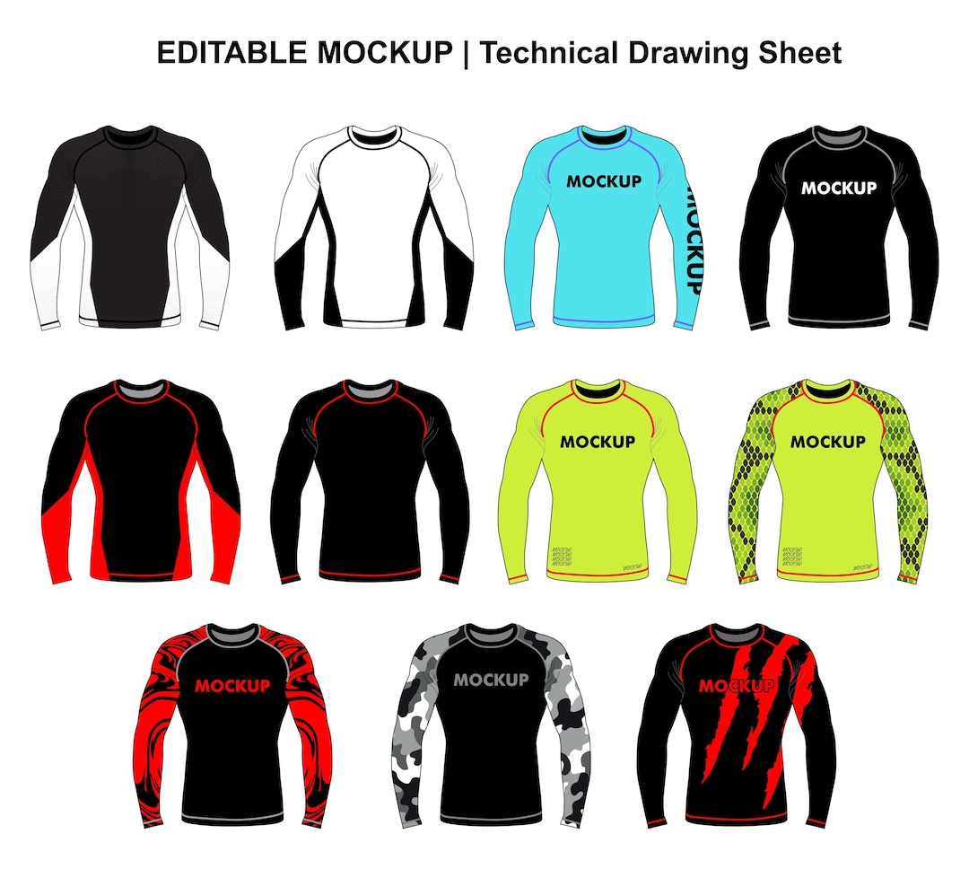 Editable Vector Rash Guard Mockup: Custom Design Template (digital