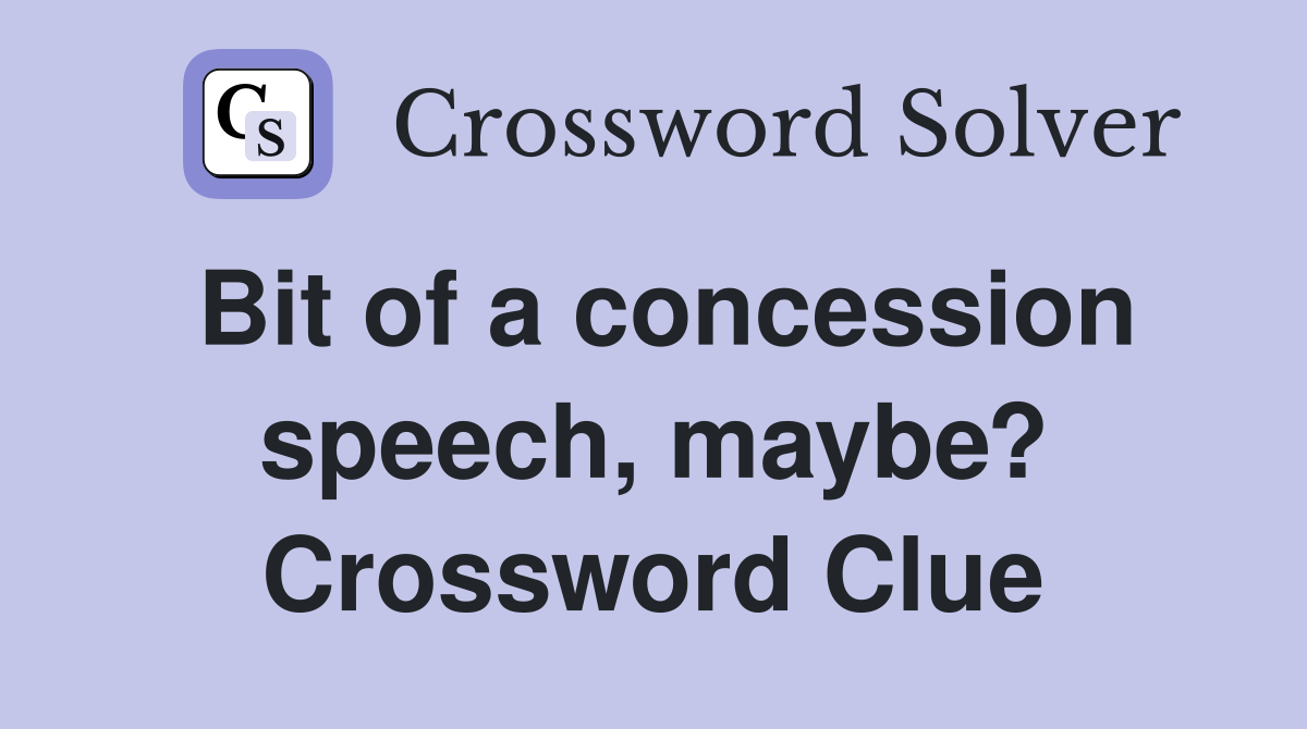 Bit of a concession speech maybe? Crossword Clue Answers Crossword
