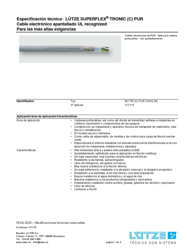Lütze Superflex Tronic (C) Pur Ul 4xu04 50228 (00000003) PDF