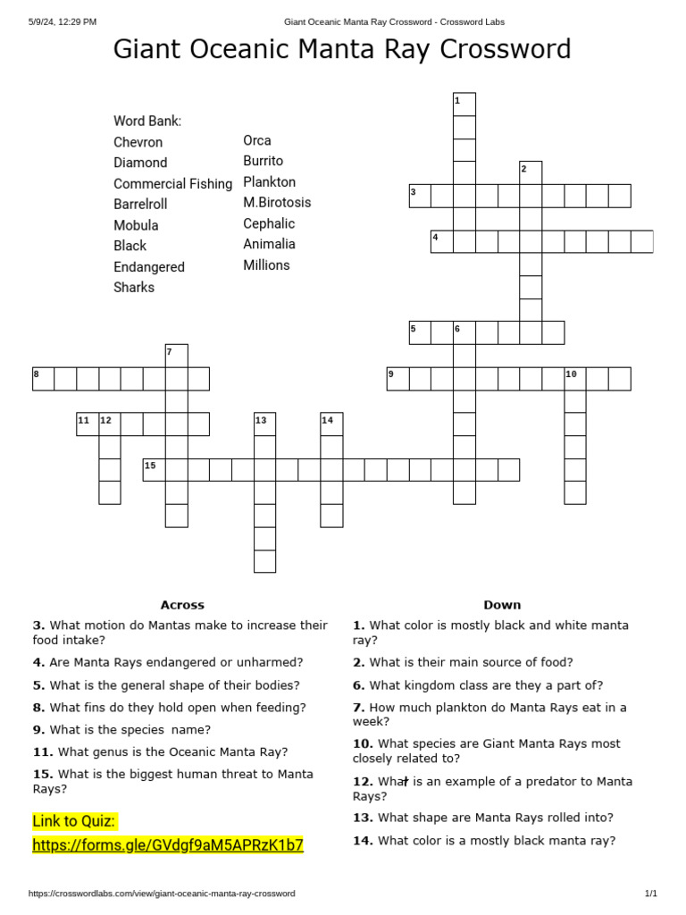 Kami Export Giant Oceanic Manta Ray Crossword Crossword Labs PDF