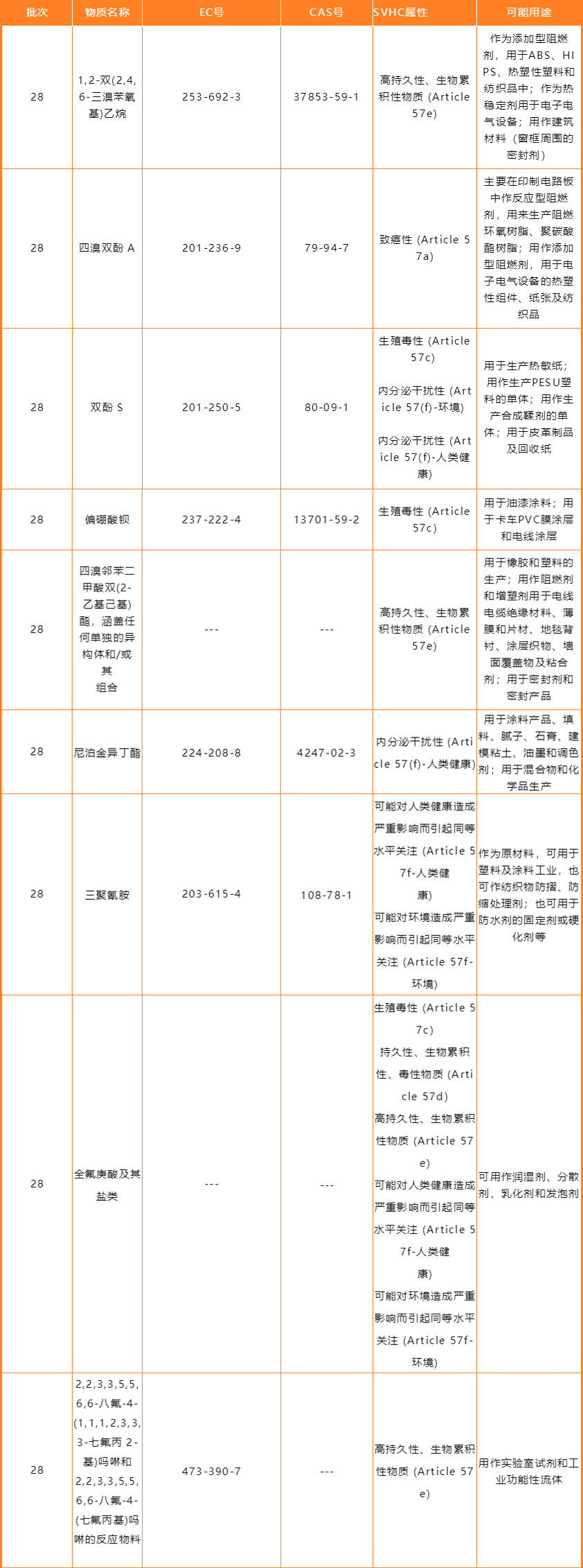 欧盟REACH更新 第28批9项SVHC发布,共计233项! 物质 生产 产品
