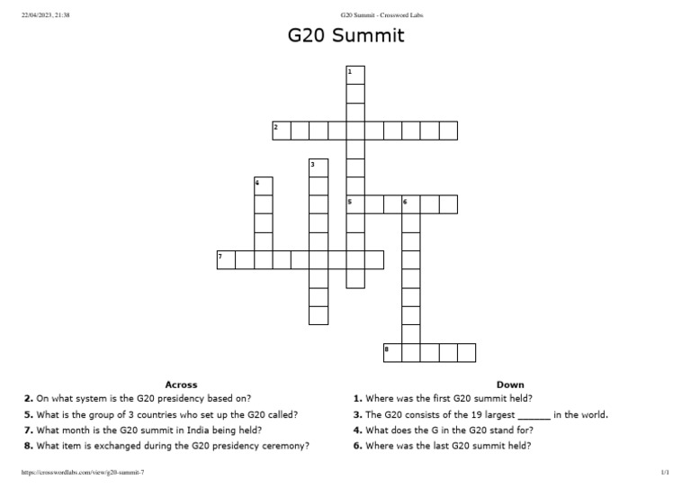 G20 OSAKA SUMMIT 2019 Crossword WordMint