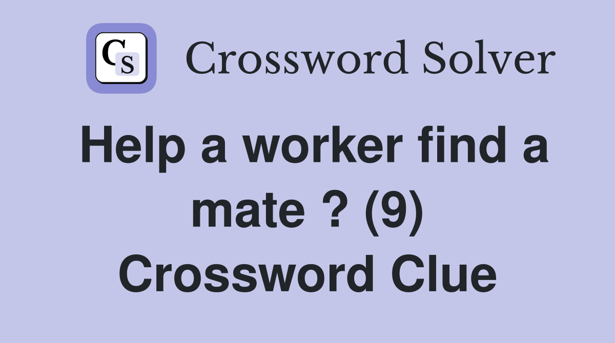 Help a worker find a mate ? (9) Crossword Clue Answers Crossword Solver