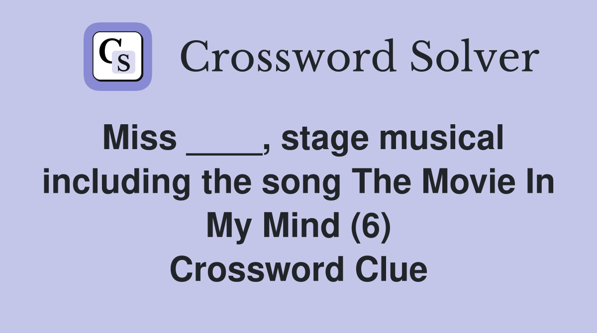Miss stage musical including the song The Movie In My Mind (6