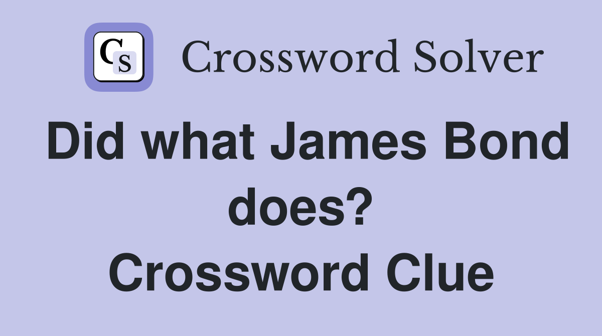 Did what James Bond does? Crossword Clue Answers Crossword Solver