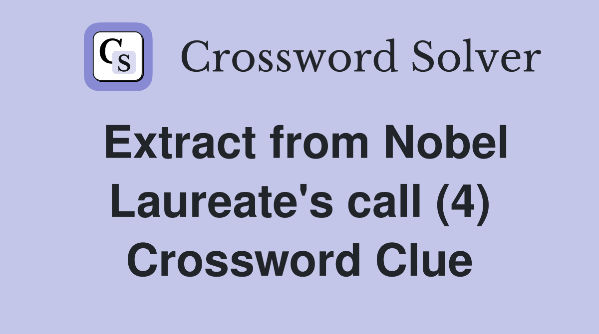 Extract from Nobel Laureate #39 s call (4) Crossword Clue Answers