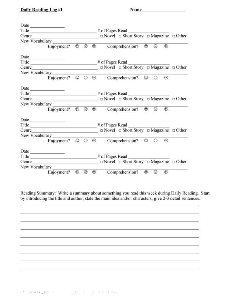 47 Printable Reading Log Templates for Kids Middle School Adults