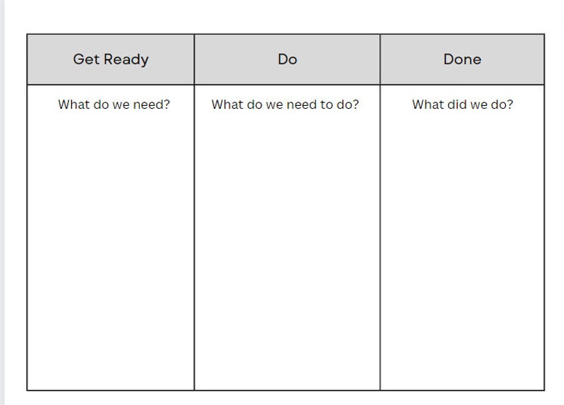 Get Ready Do Done Outline Task Analysis Chart by Morgan Boncore