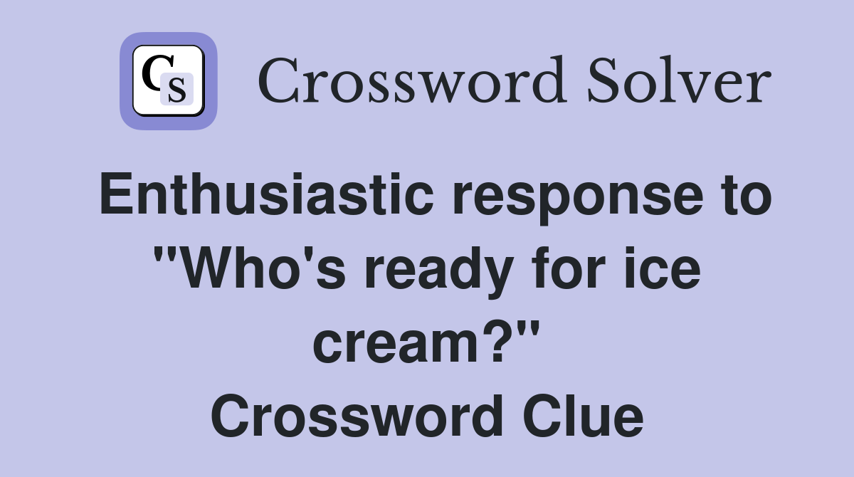 Enthusiastic response to quot Who #39 s ready for ice cream? quot Crossword Clue