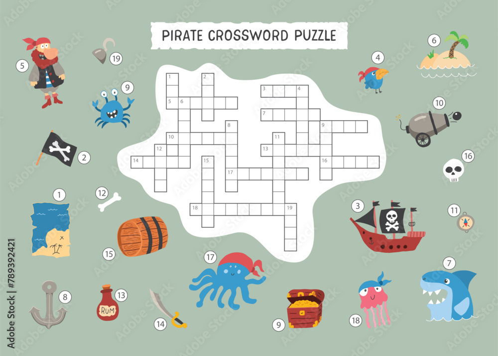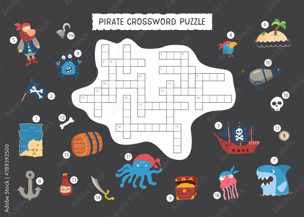 Crossword puzzle game for children in English Cute cartoon Pirate