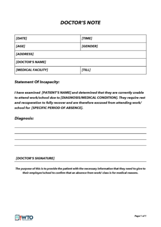 Real Doctor #39 s Note for Work Template Printable PDF Word Format