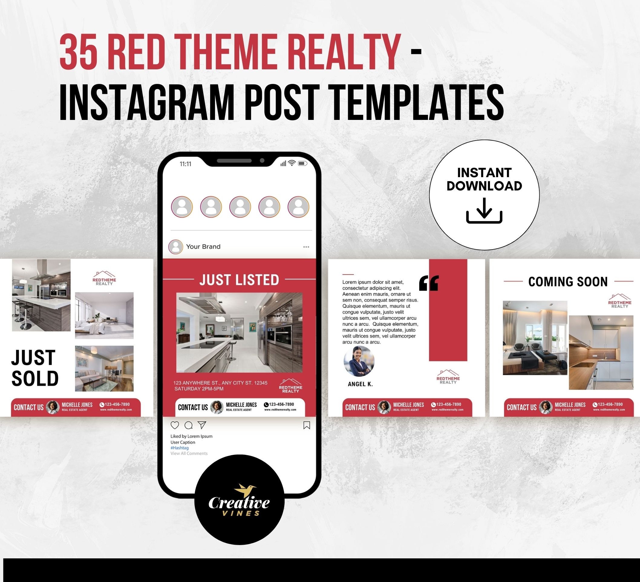 Red Theme Realty Instagram Post Template Real Estate Agent Template