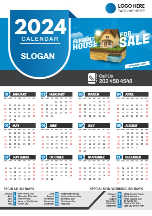 Corporate Real Estate Calendar 2024 Design Template PSD Free Download