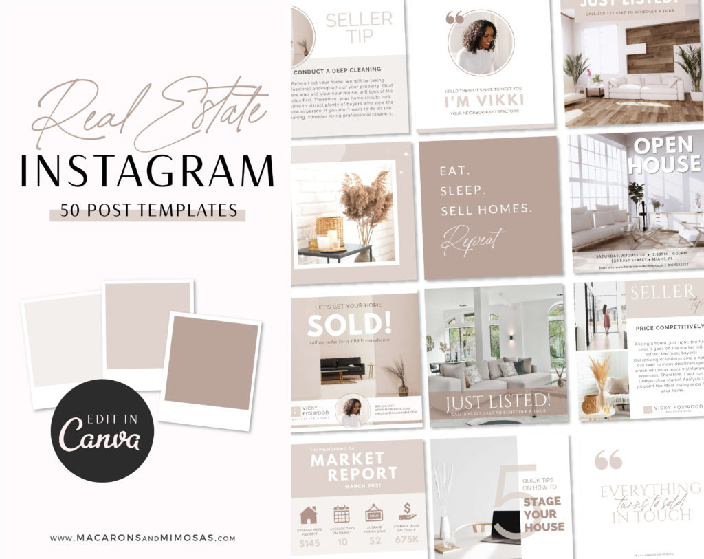 Neutral Real Estate Instagram Templates • Macarons and Mimosas