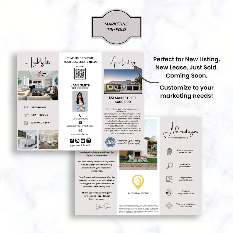 Real Estate Marketing Brochure for Home Listings Customizable Home Sale