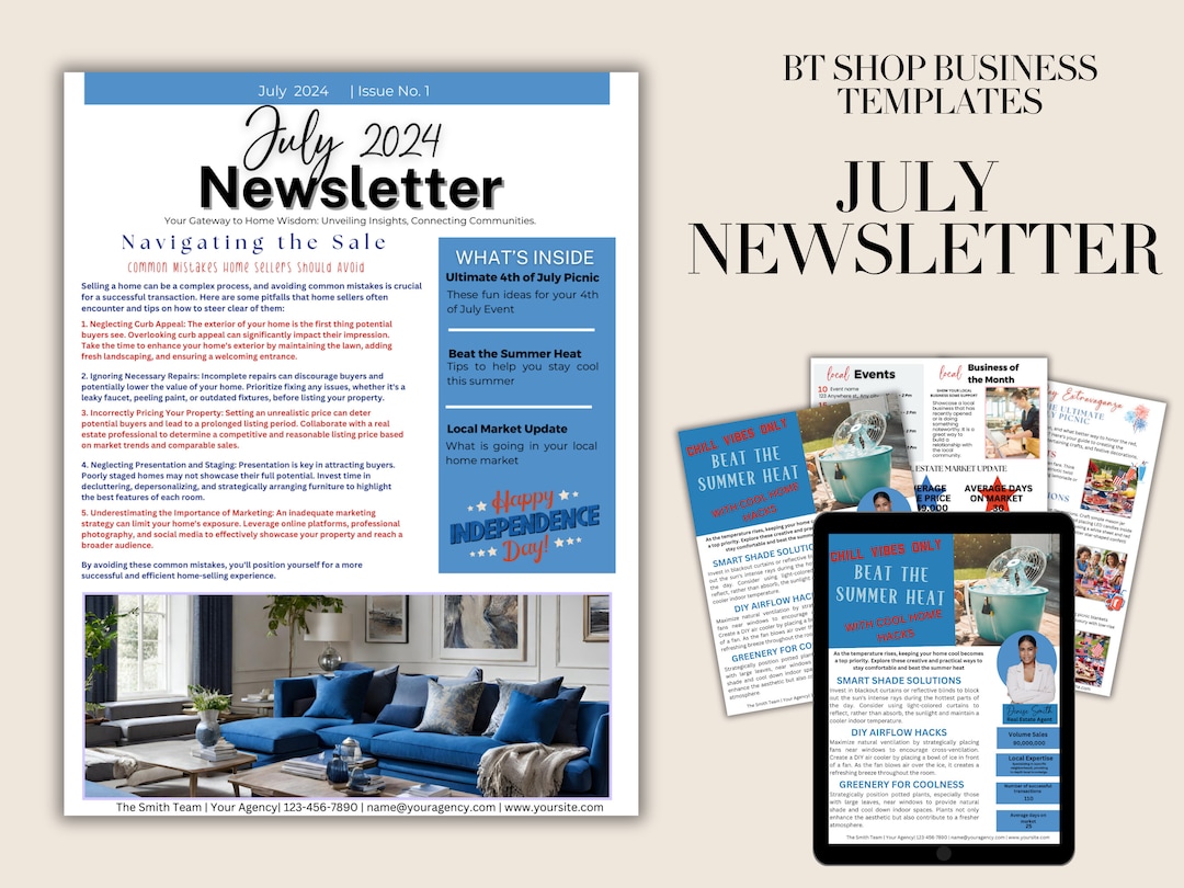 July Real Estate Monthly Newsletter 8 5 X 11 Template Etsy