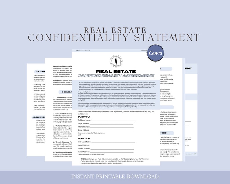 Free Real Estate Confidentiality (NDA) Agreement Template to Edit Online