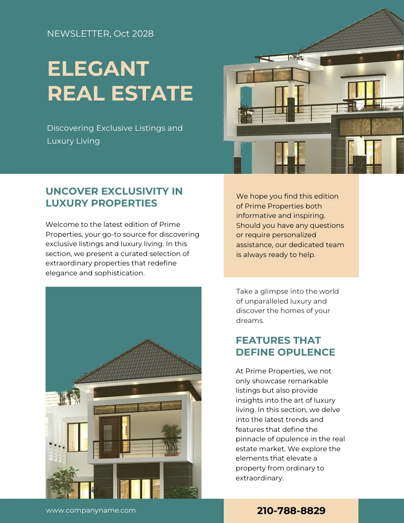 Elegant Green Cream Real Estate Newsletter Template Venngage