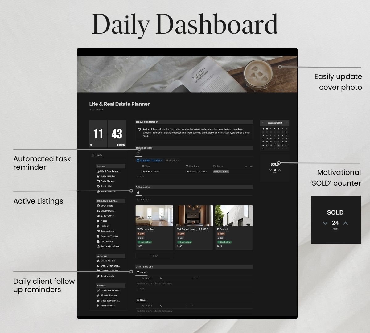 The Real Estate Planner Notion Template Editable Listing