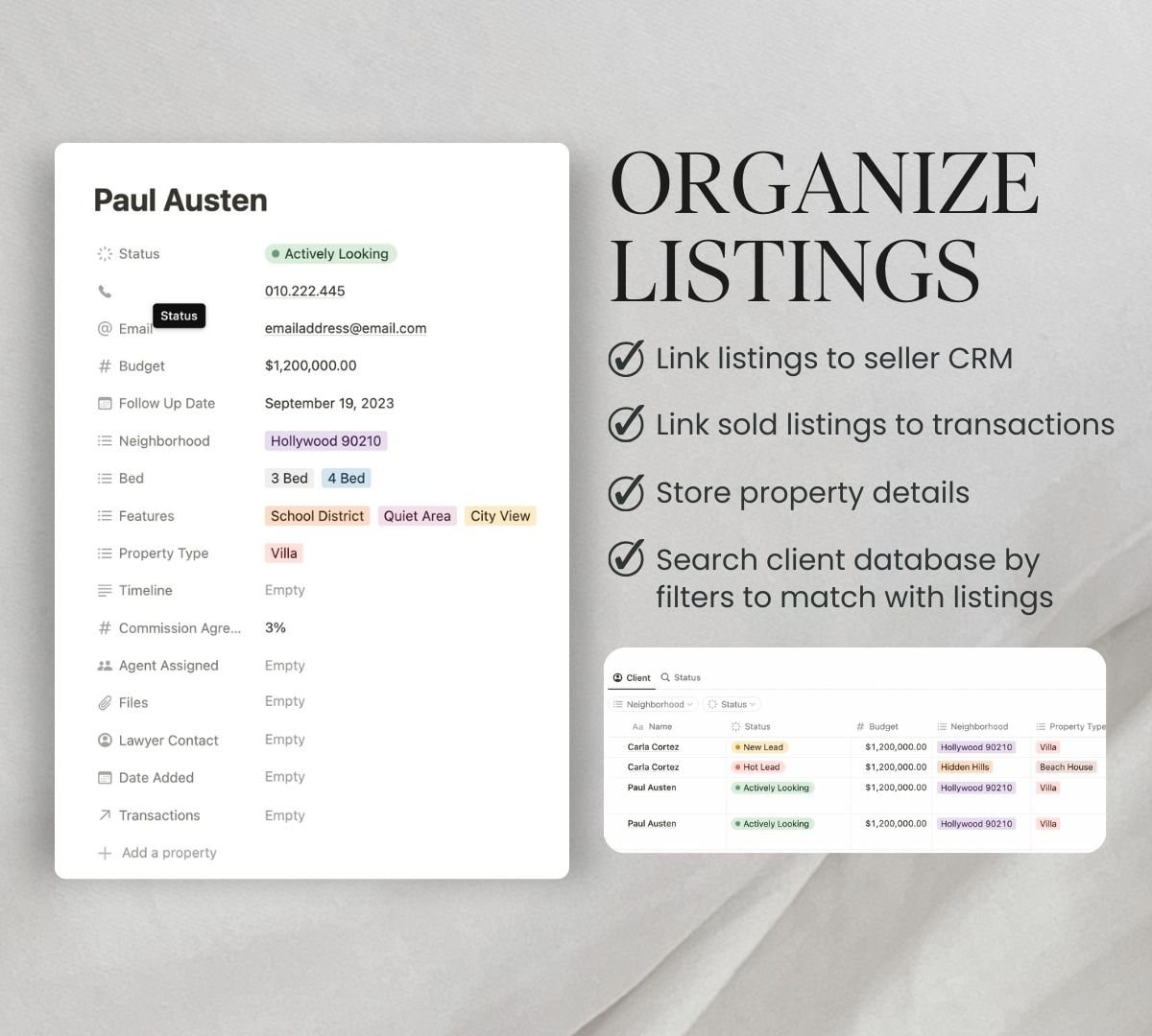 Real Estate Planner CRM Notion Template Etsy