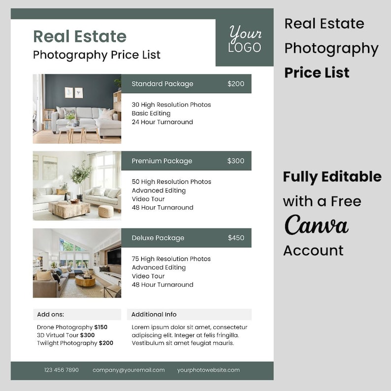 Real Estate Photography Price List Price Menu Canva Template Etsy