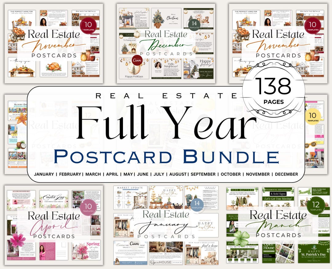 Full Year Real Estate Postcard Templates Real Estate Postcard Bundle