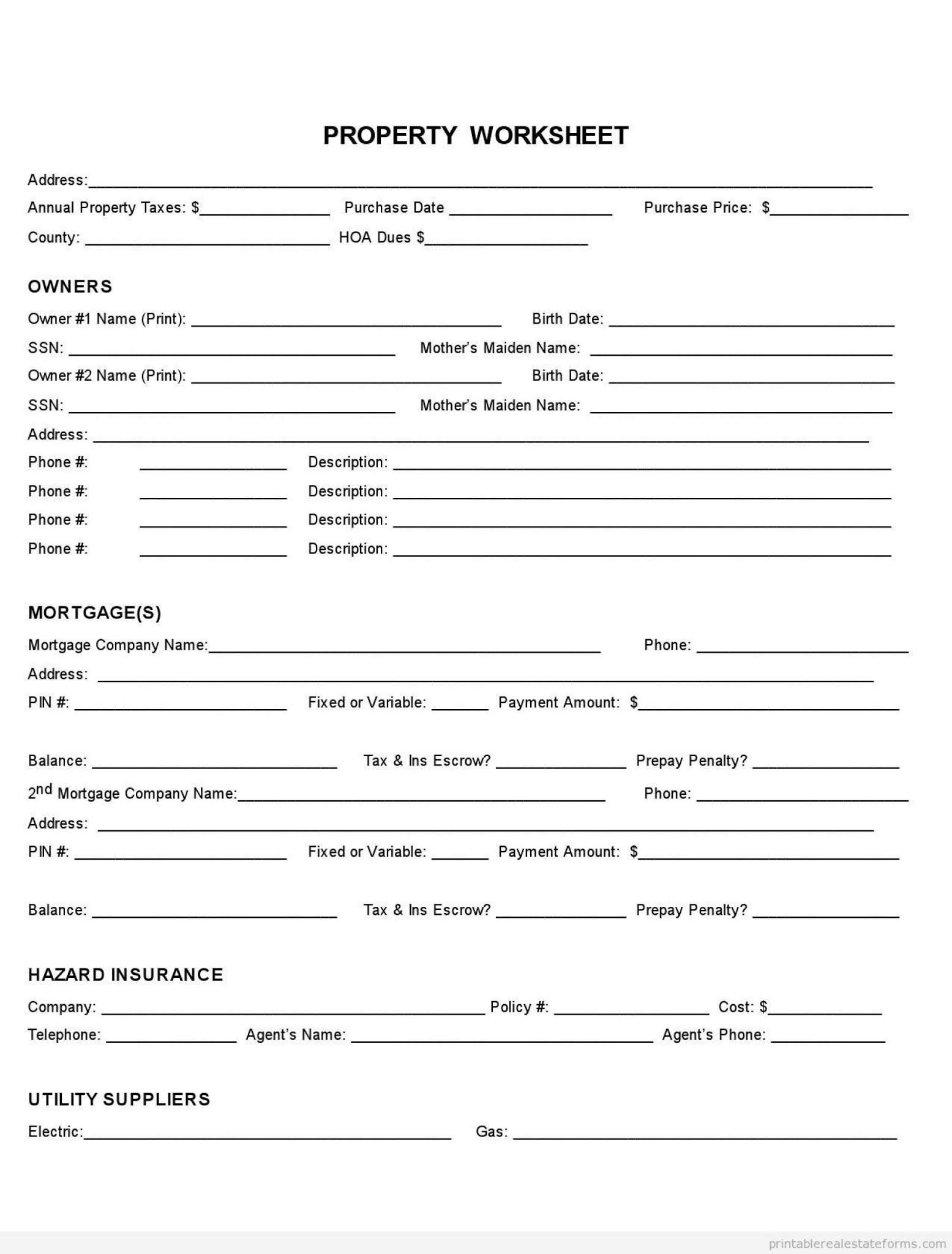 Real Estate Property Information Sheet Free Real Estate Buyer