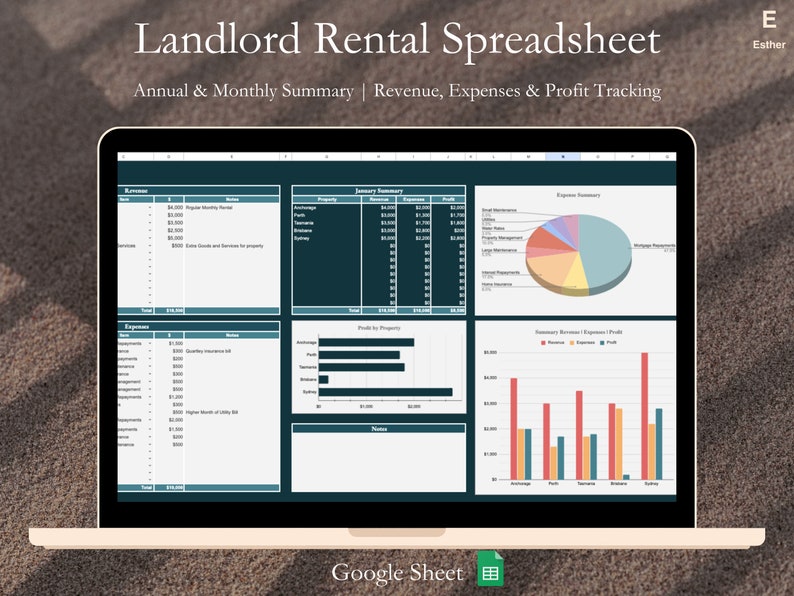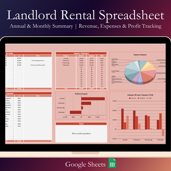 Landlord Property Rental Spreadsheet Template for Google Etsy