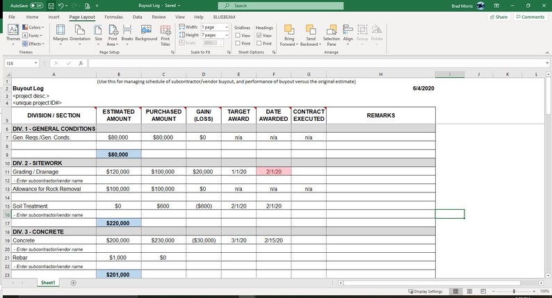 Multiple Construction and Real Estate Spreadsheet Templates Etsy