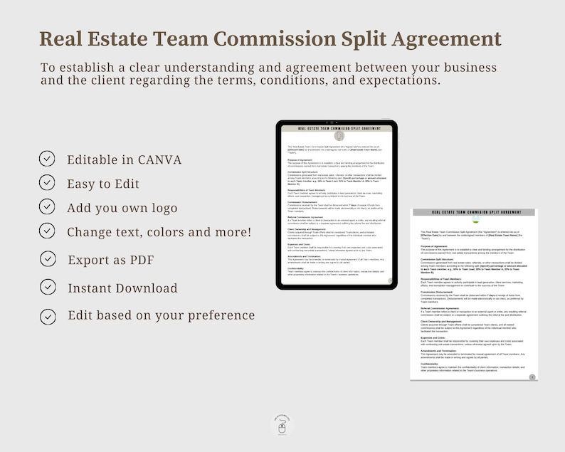Editable Real Estate Team Commission Split Agreement Template Realtor