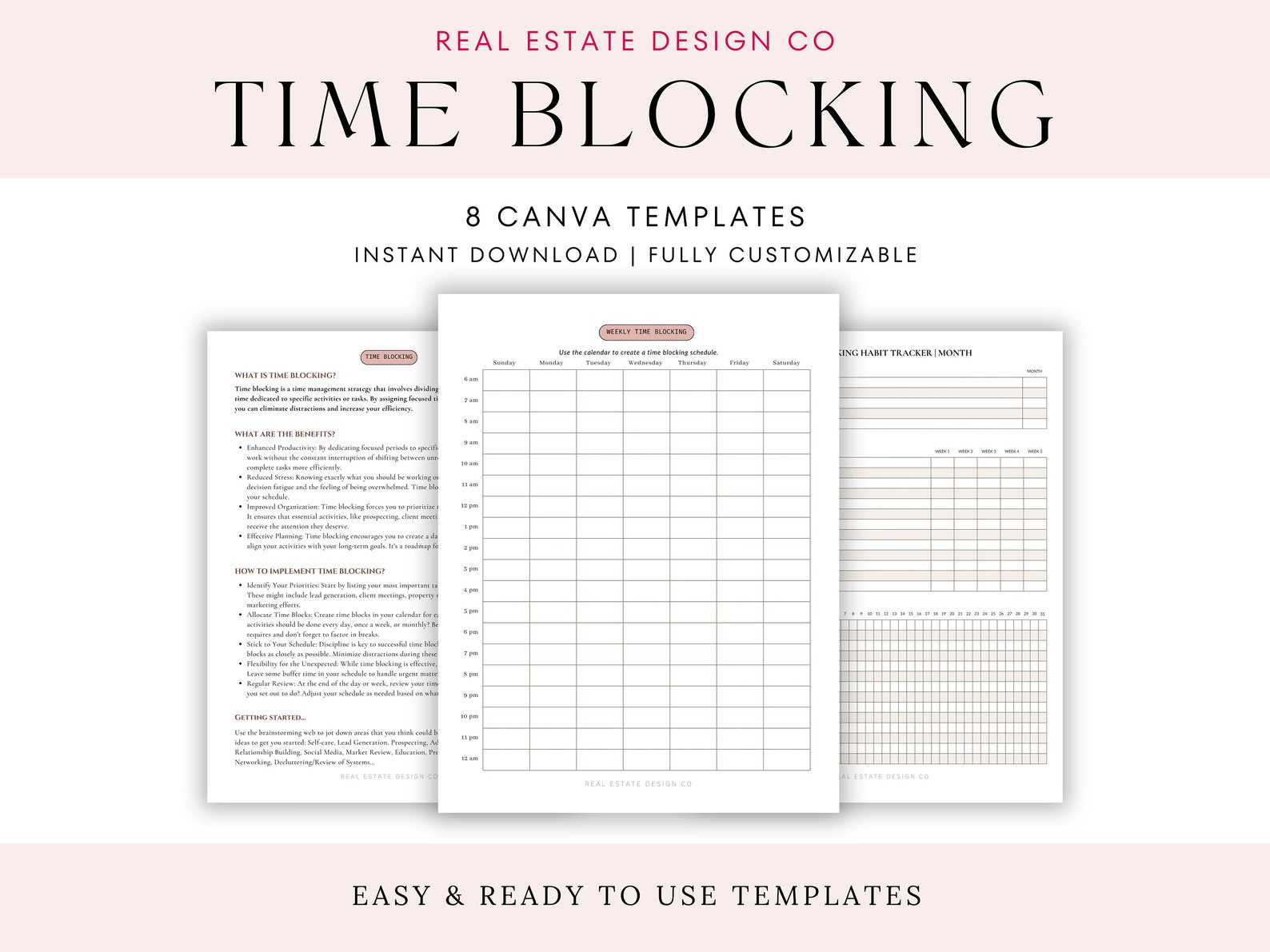 Real Estate Agent Time Blocking Planner Canva Template Daily Weekly