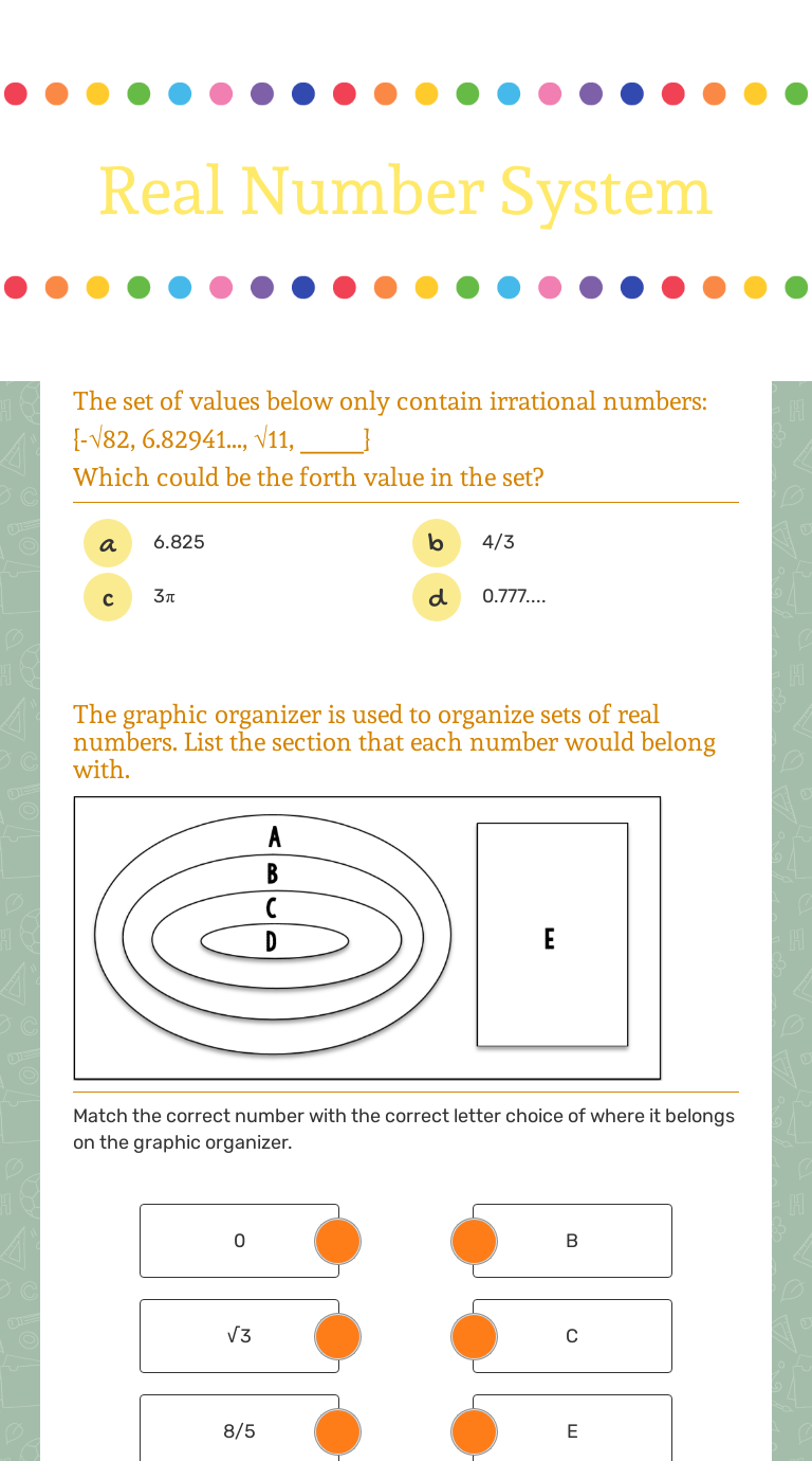 Real Numbers System Worksheet