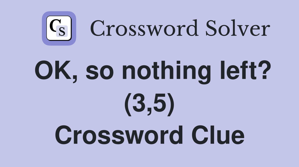 OK so nothing left? (3 5) Crossword Clue Answers Crossword Solver
