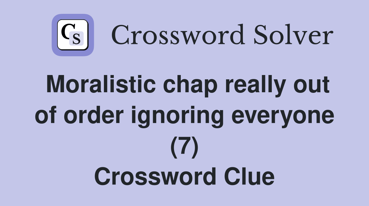 Moralistic chap really out of order ignoring everyone (7) Crossword