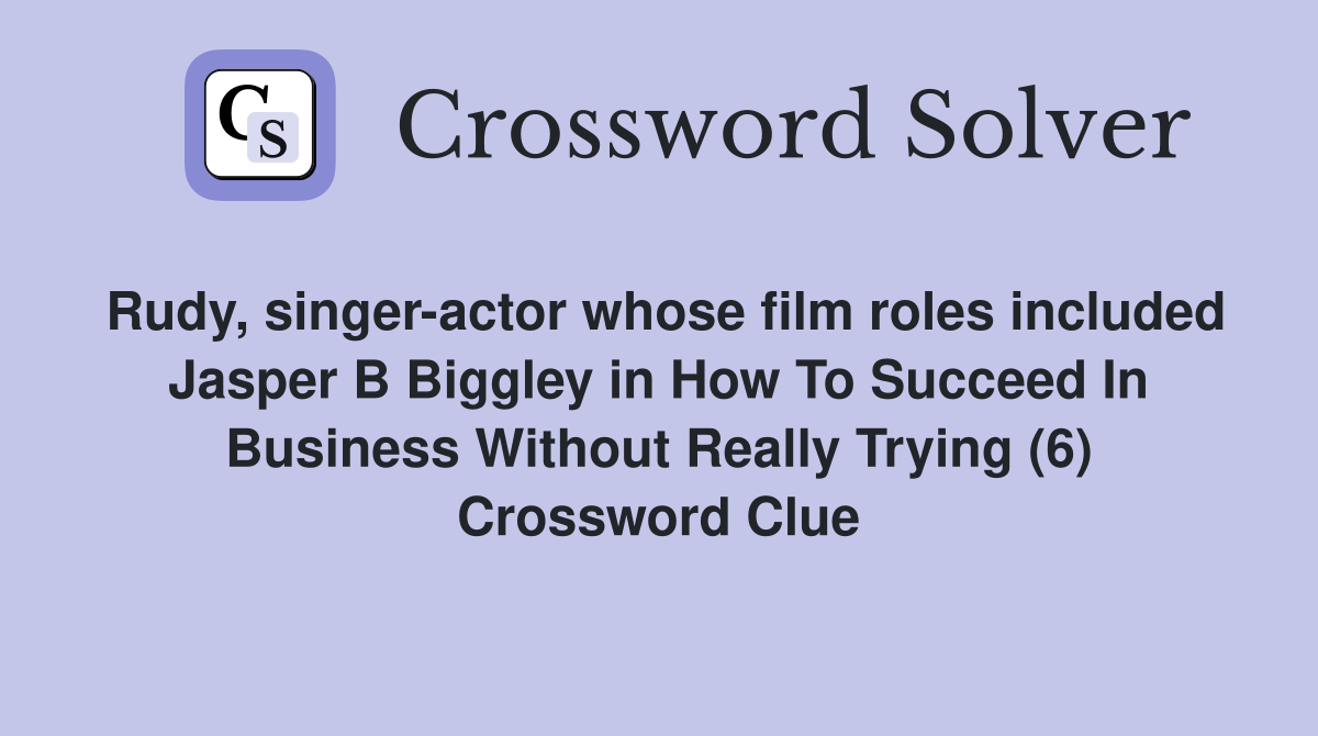 Rudy singer actor whose film roles included Jasper B Biggley in How To