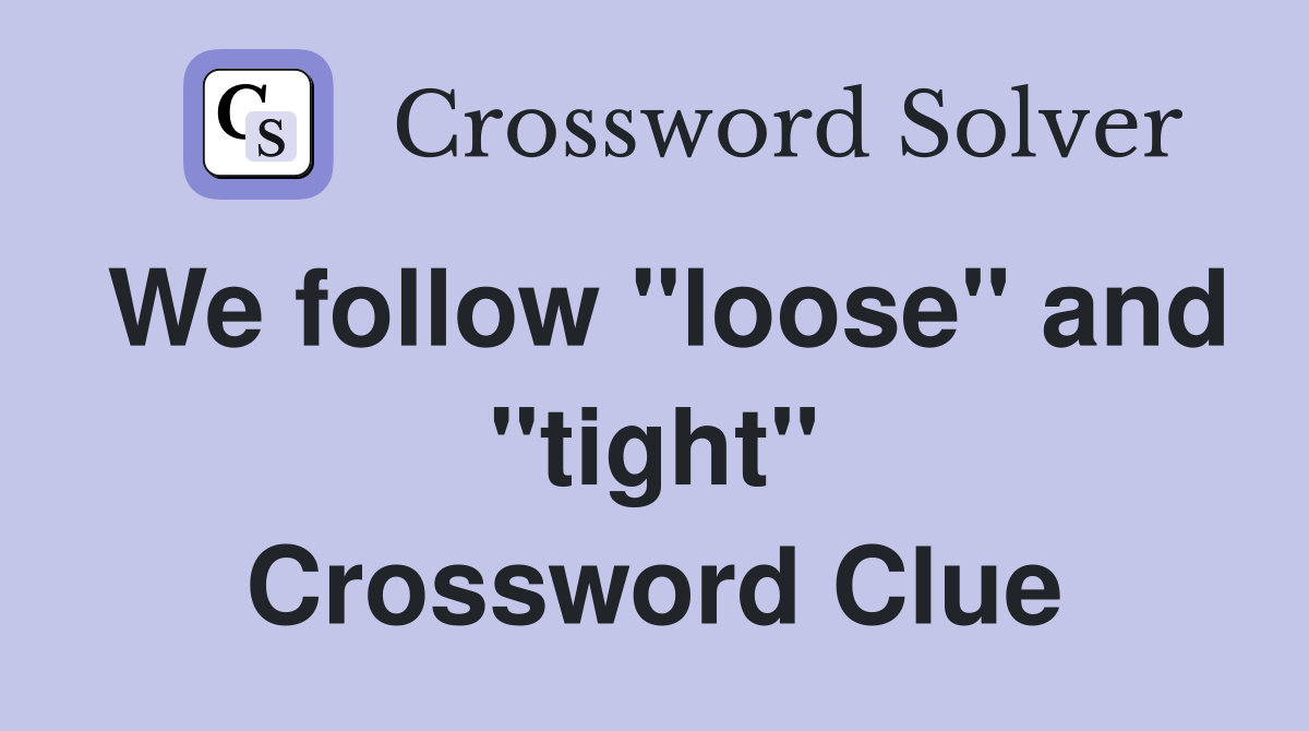 We follow quot loose quot and quot tight quot Crossword Clue Answers Crossword Solver