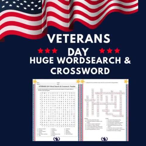 Veterans Day Word Search and Crossword 10 Huge Vocabulary Puzzles No Prep