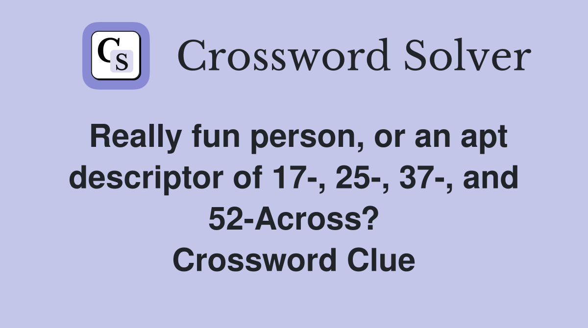 Really fun person or an apt descriptor of 17 25 37 and 52 Across